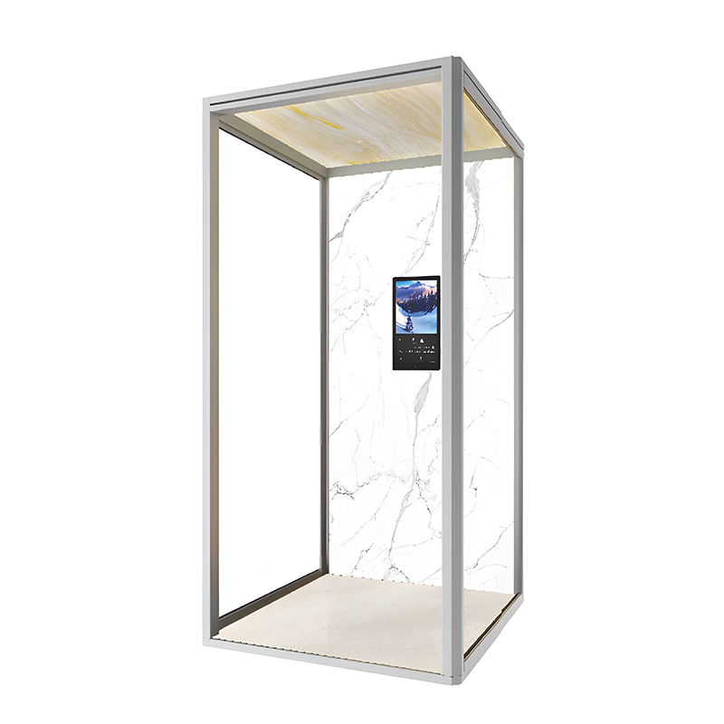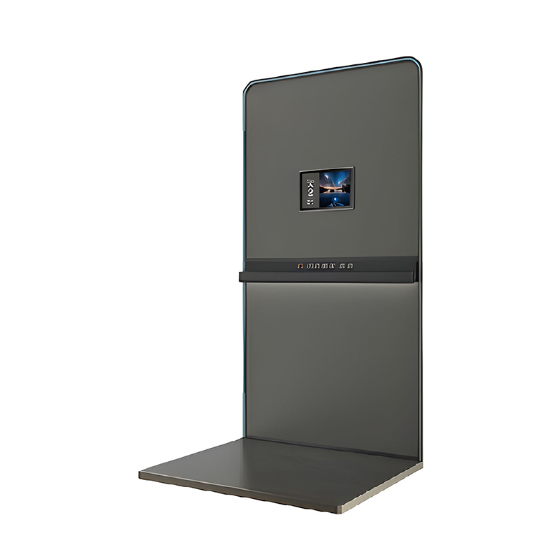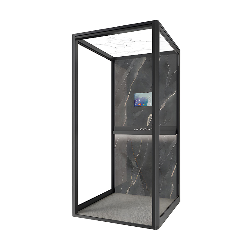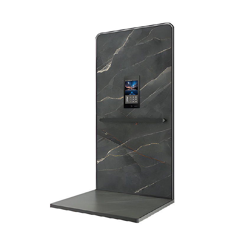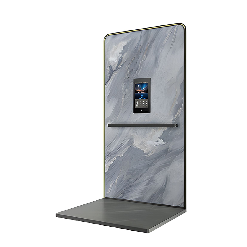 As opções de gabinete incluem designs totalmente fechados, semifechados ou abertos. Materiais como vidro, metal ou madeira podem ser escolhidos para combinar com a estética da casa.
